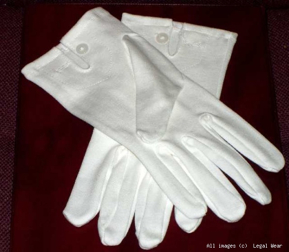 White cotton gloves with mother of pearl button wrist fastening and tri back stitching
